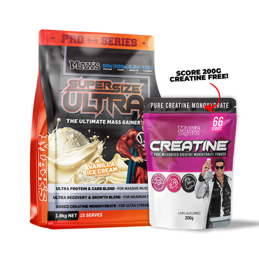 View full detailsMAX’S SUPER SIZE ULTRA is the ultimate Weight, Size and Mass Builder. When you want to get big fast - this is the product for you! You will pack th...