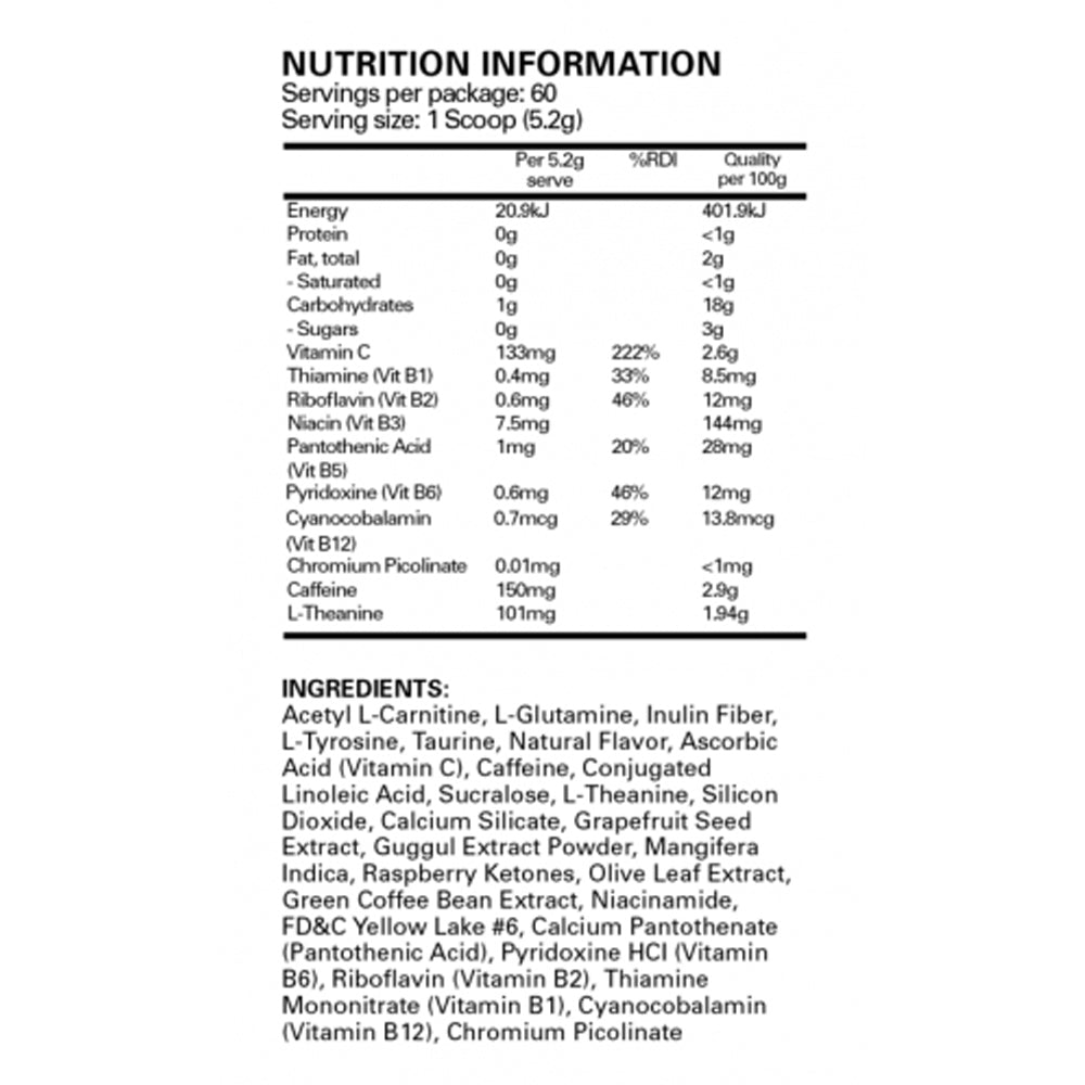 L-Tyrosine has been added due to its potential benefits in improving working memory, focus and coordination when exercising ⁸. For mood enhancing properties, studies have shown that Taurine and caffeine have proven to be very effective ⁹. In addition, Taurine can decrease feelings of anxiety and stress. Outside the gym environment, these ingredients can also be used to improve focus and performance in the workplace, particularly to combat the afternoon slump. The unique combination of stimulants and nootropic used will ensure there is no post-peak crash or loss of focus.